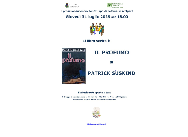 GDL: Il Profumo di Suskind Ingresso libero. Si può partecipare anche senza intervenire e senza aver letto il libro.