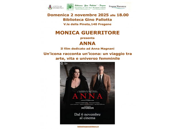 Monica Guerritore sarà in Biblioteca domenica 2 novembre, alle ore 18 per parlare del film, da lei scritto e diretto, “Anna” dedicato ad Anna Magnani.